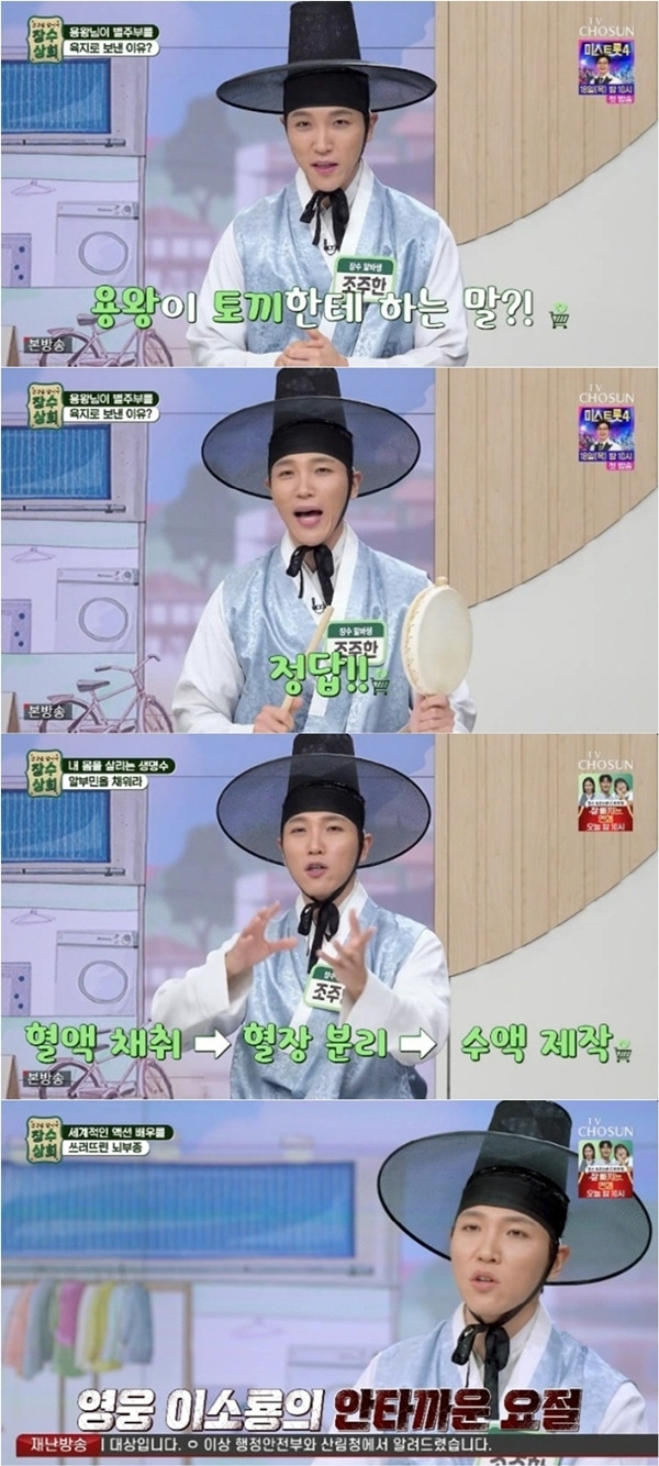 조주한은 오늘의 주제인 '간'과 관련된 키워드를 소개하며 가수다운 면모를 과시했다. 그는 판소리 '수궁가'의 한 구절을 구성지게 읊으며 첫 번째 키워드를 공개했다. 용왕이 병에 걸려 토끼의 간을 요구하는 내용을 생동감 있게 전달한 조주한은 전문가 및 패널들과 함께 알부민과 간 건강의 연결고리를 풀어가는 데 중요한 역할을 수행했다.