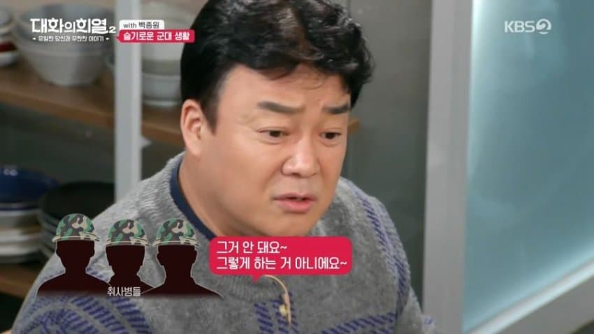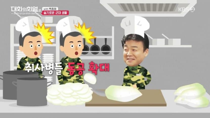 보름 뒤 점심메뉴를 갑자기 무생채로 바꿔버리고 가로세로 길이까지 까다롭게 지시하며 취사병들에게 채칼까지 쓰지 말라는 백종원...
