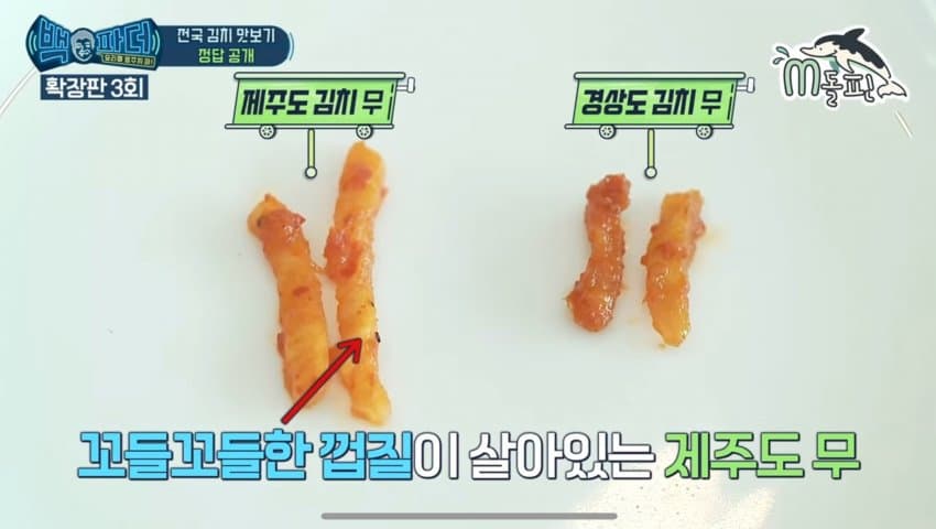김치에 들어간 무껍질맛을 보고 제주도 김치인걸 알아챘다 함