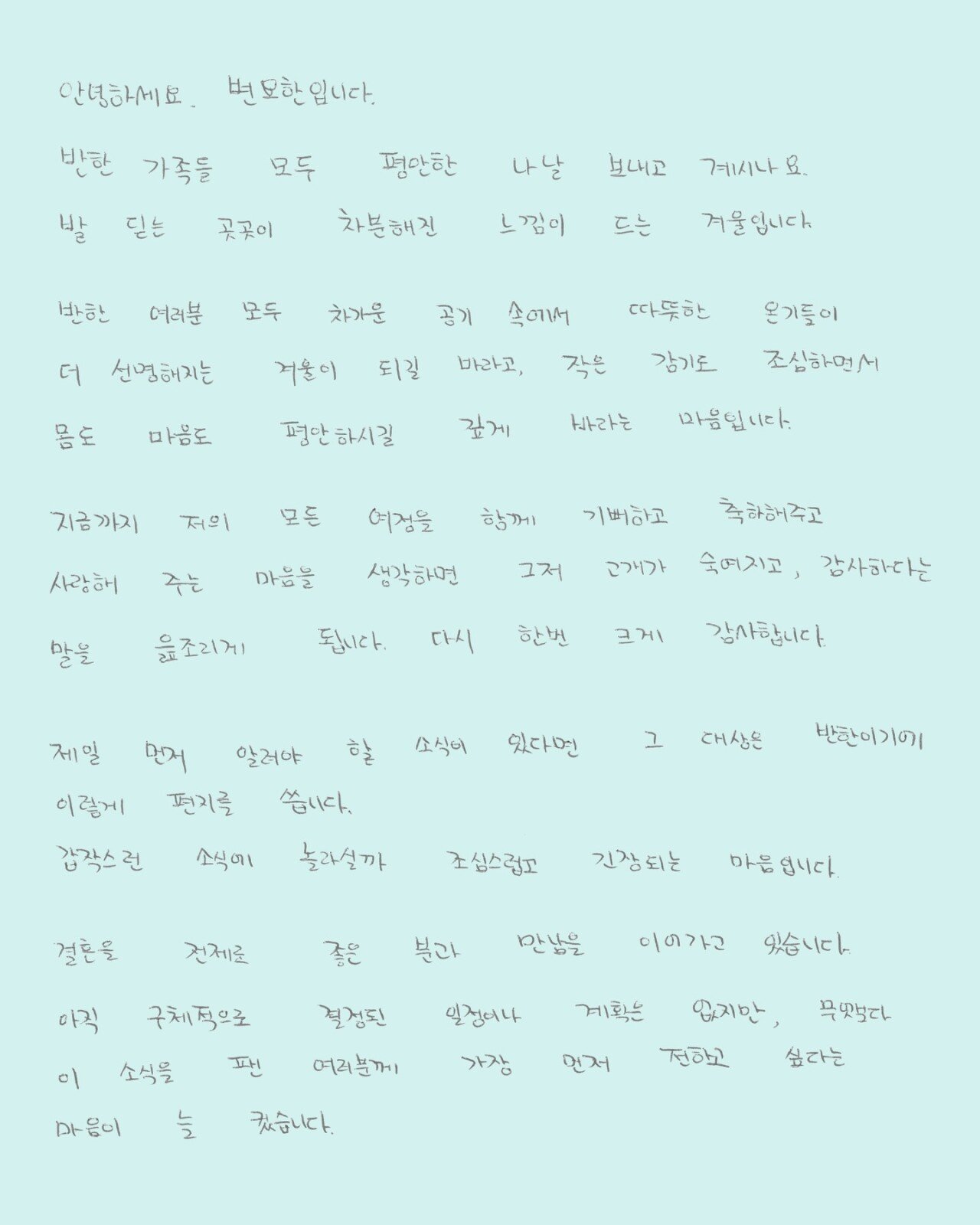 소녀시대 티파니랑 결혼한다는 변요한 인스타 자필편지