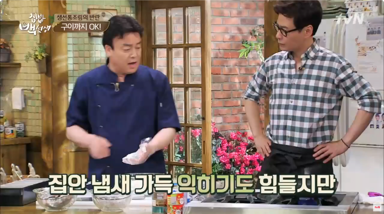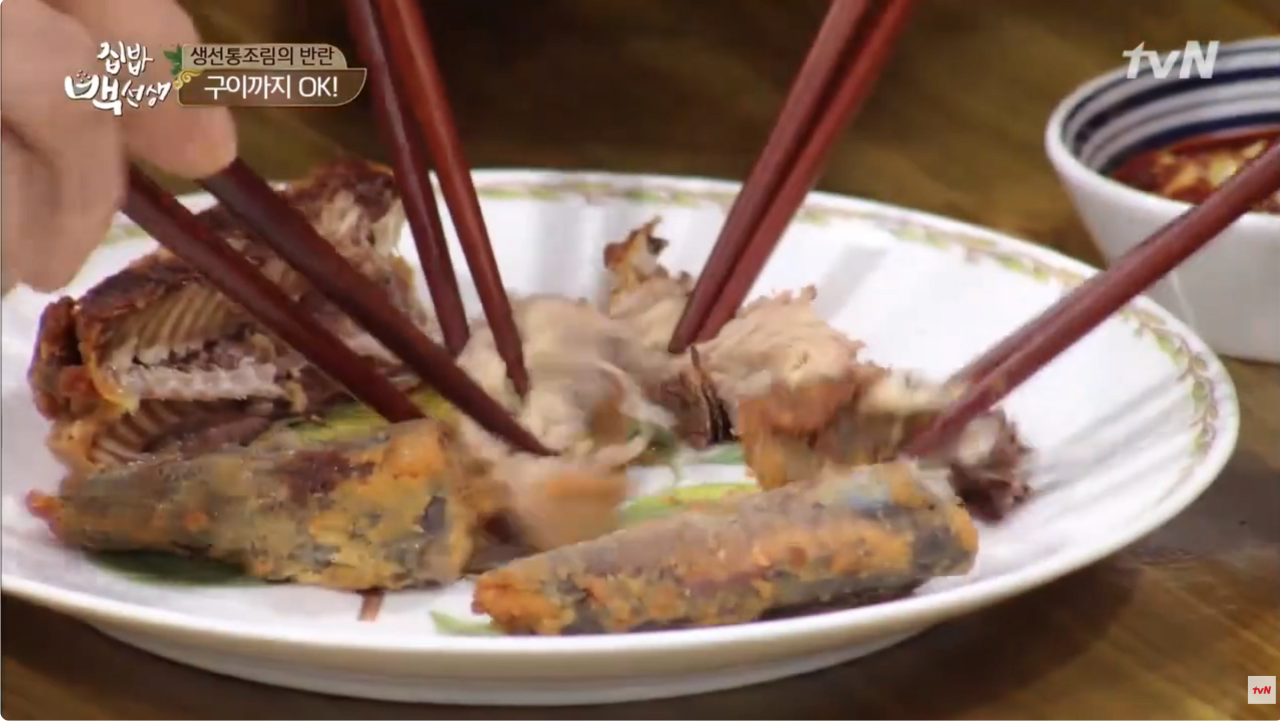생물로 고등어를 구우면 냄새와 연기가 가득하고 기름이 튀어 익히기 힘들다고 하는 백어묵 선생님