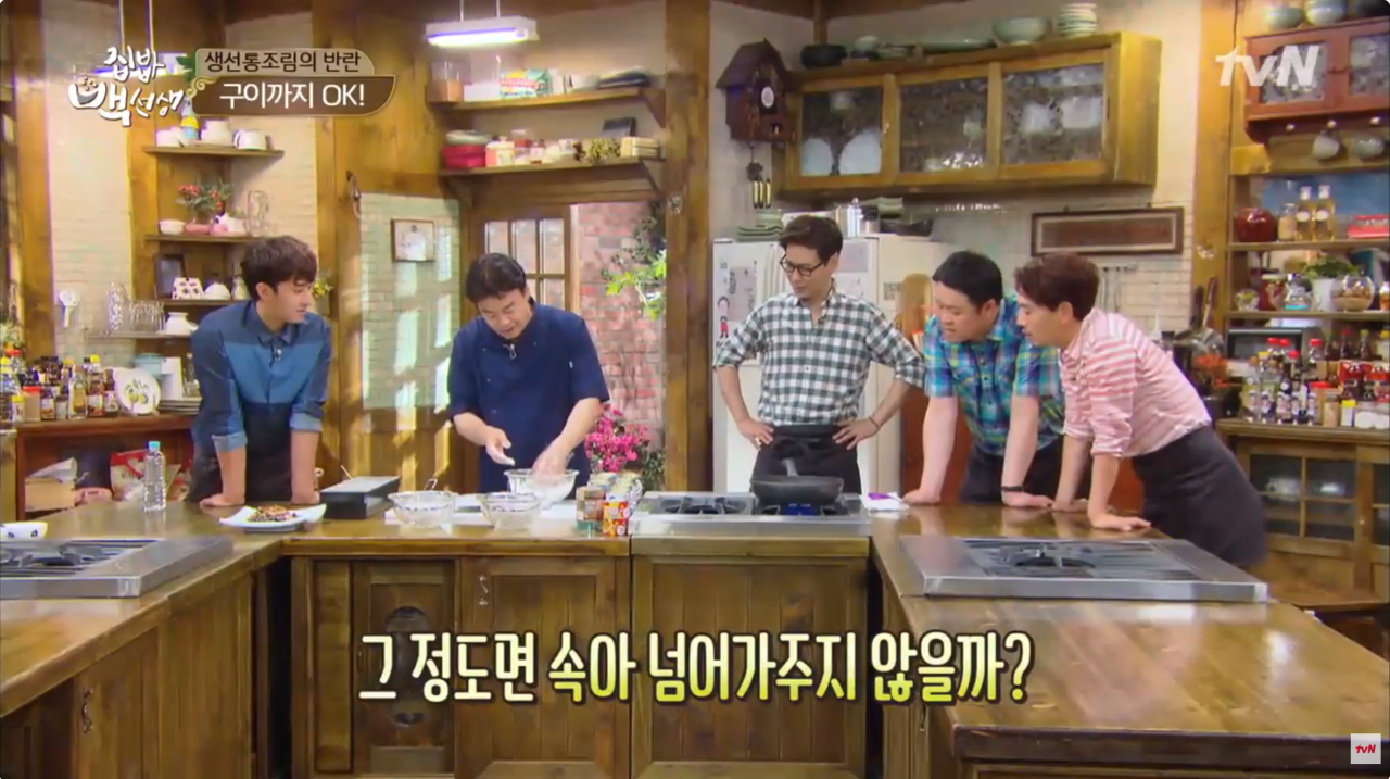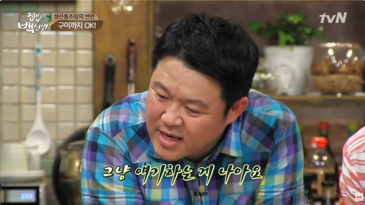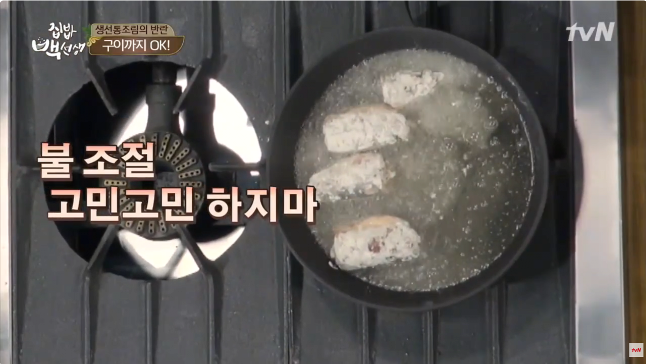 자막에선 "굽는걸" 이라고 나오지만 실제로 백선생님은 "지금은 튀기는걸 봐서 그렇지" 라고 말함