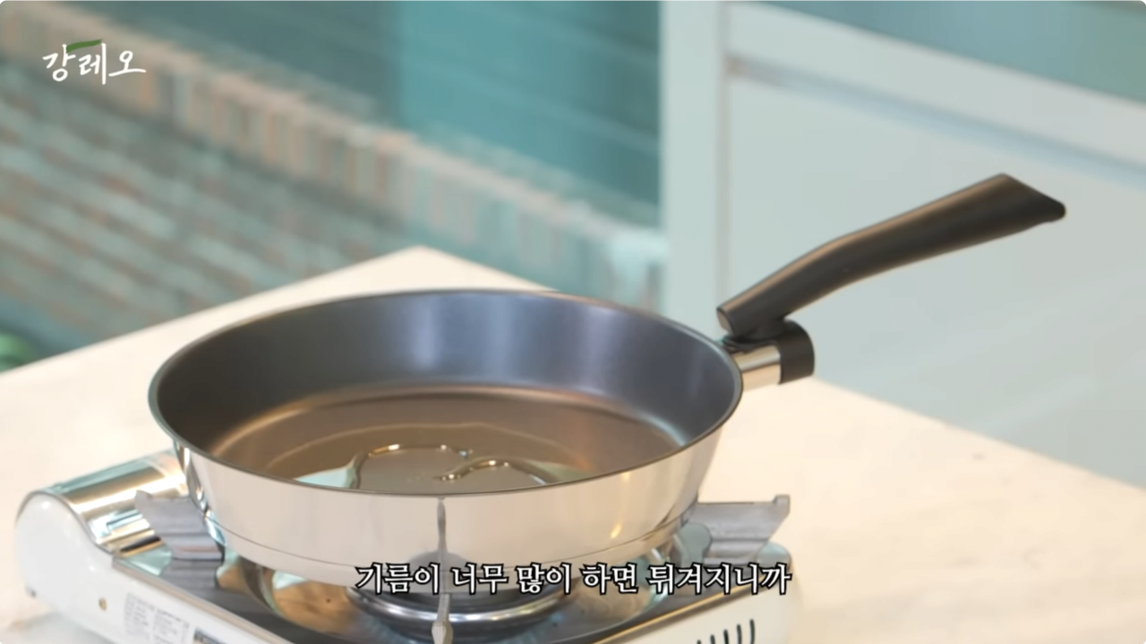 기름 너무 많이 하지 말고, 그렇게 하면 튀겨진다고 얘기하는 강레오