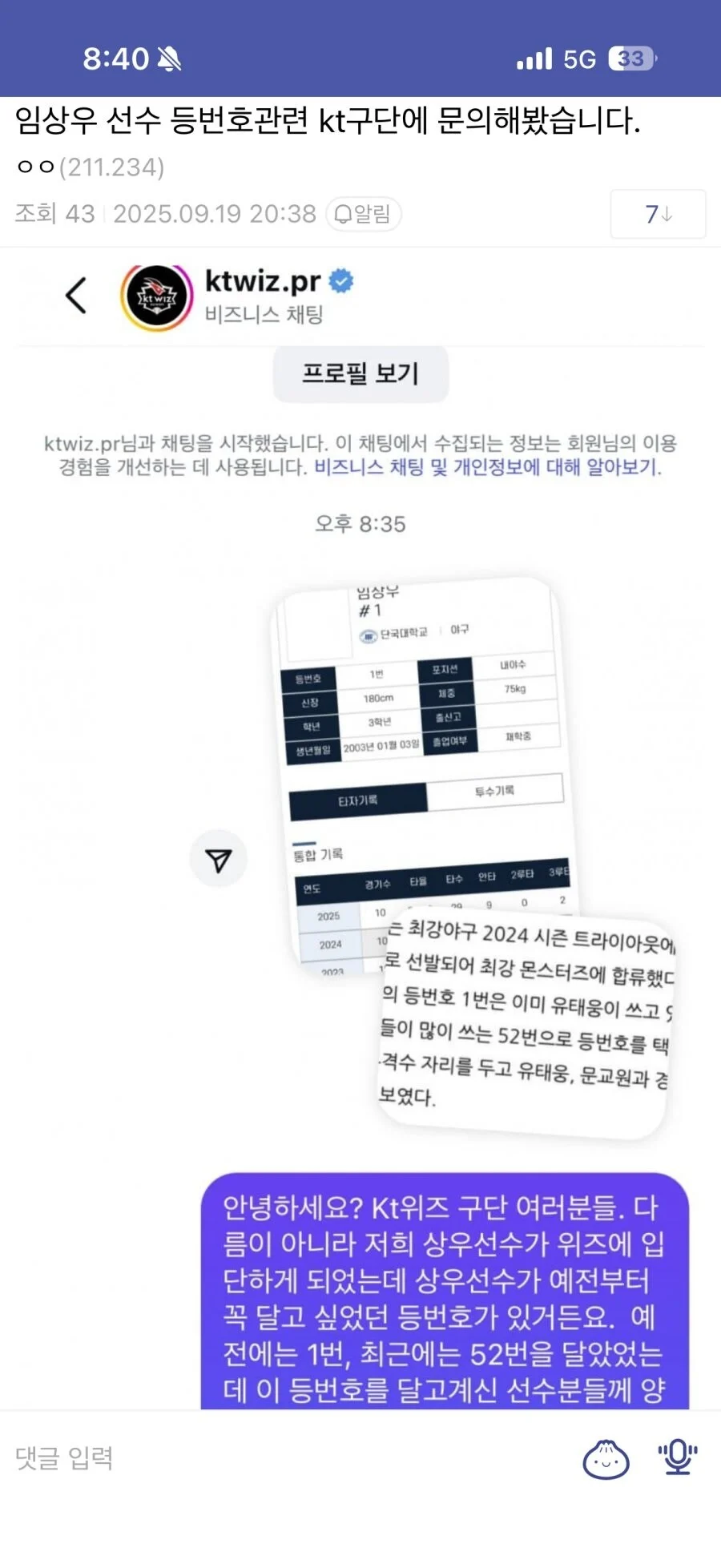 kt위즈 창단할때부터 선수생활한 프랜차이즈스타 고영표한테 등번호 내놓으라고 전방위 겁박하는 모습