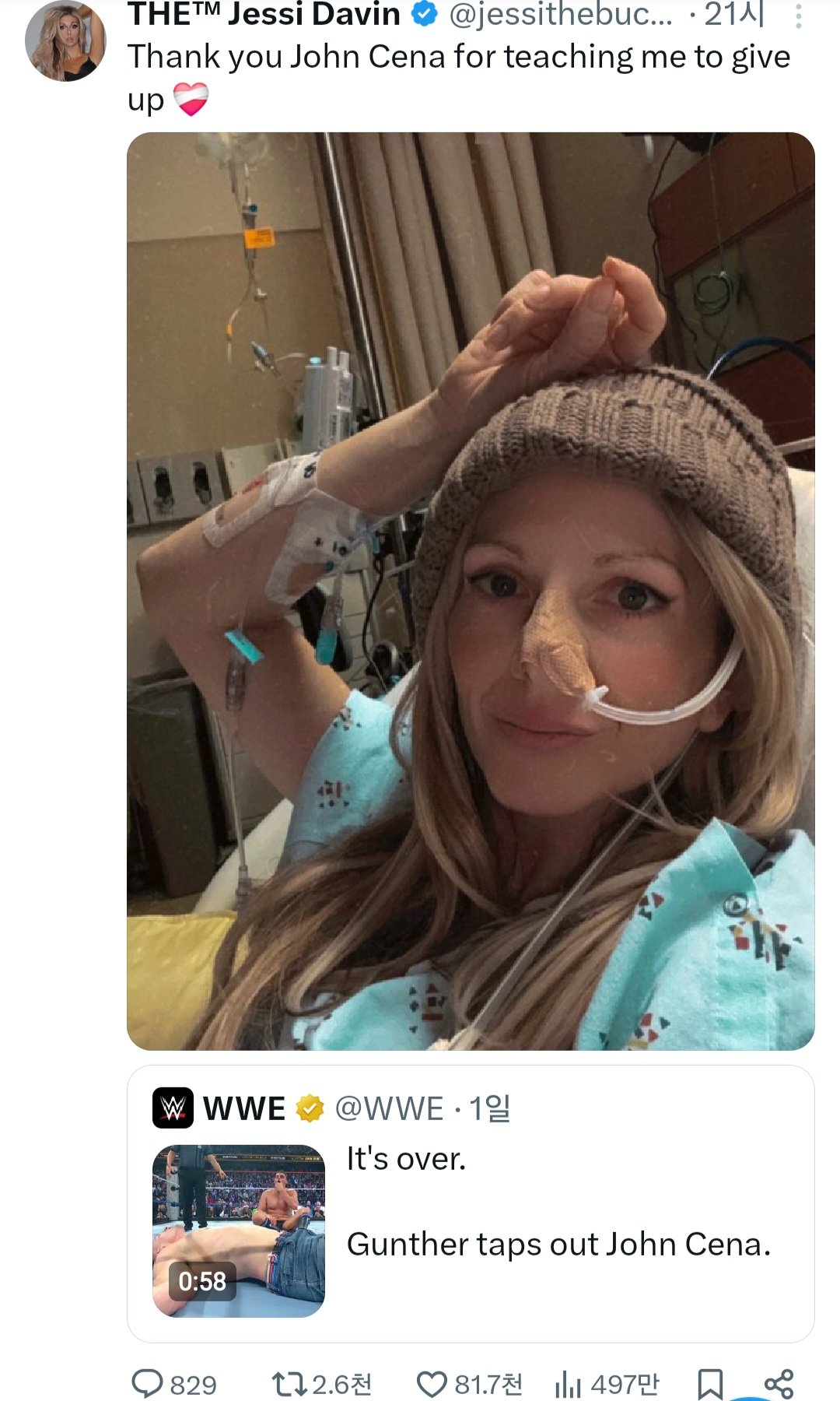 WWE 존시나 은퇴경기 보고 감사인사를 보내는 팬