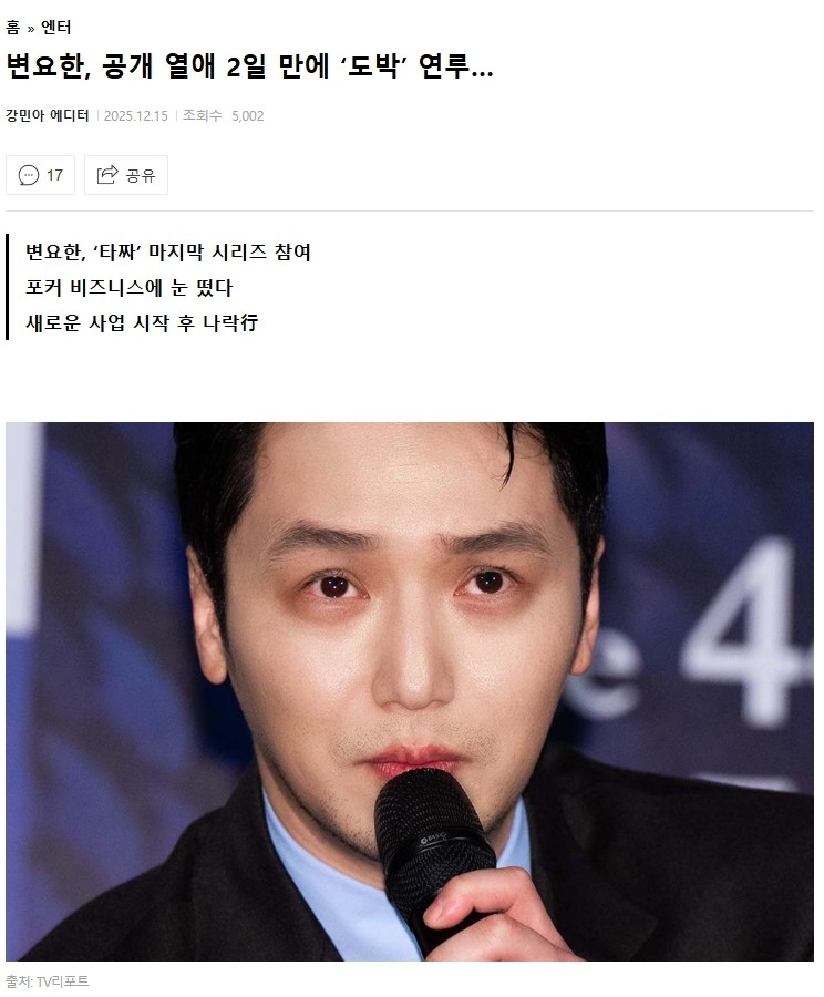 변요한, 공개 열애 2일 만에 ‘도박’ 연루…