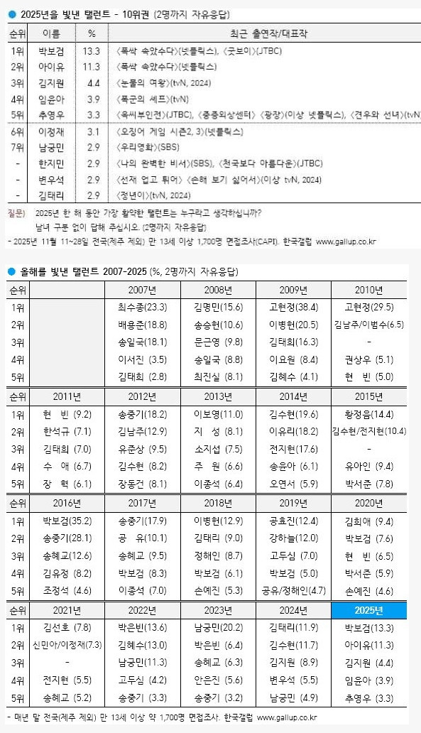 [갤럽] 올해를 빛낸 탤런트