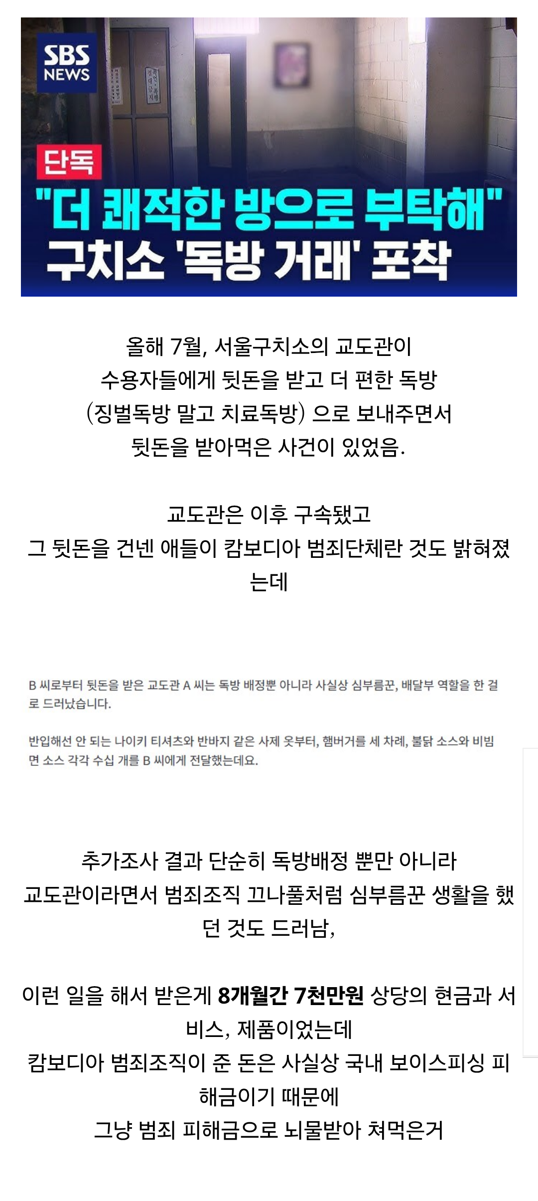 캄보디아 범죄단체에게 뒷돈받아먹은 교도소 간수