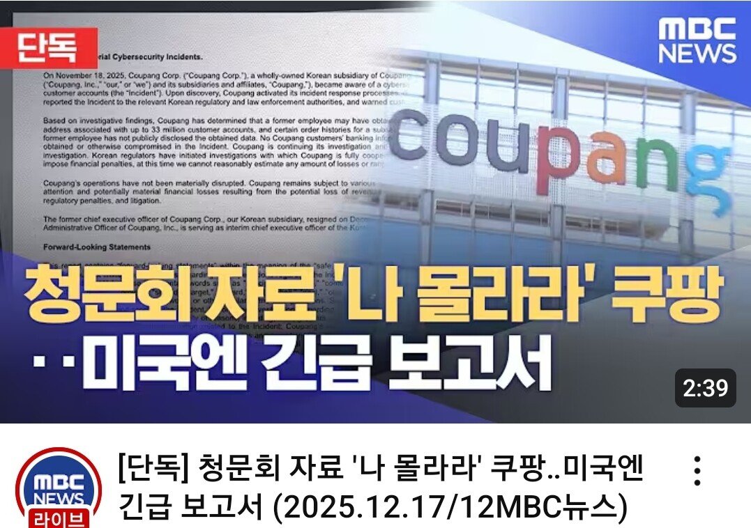 주요 언론사에서 두들겨 패고 있는 쿠팡 청문회 근황