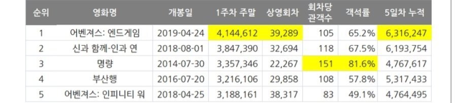 그 많은 스크린 점유율임에도 81.6%라는 오프닝 주말 전설적인 판매율을 보임