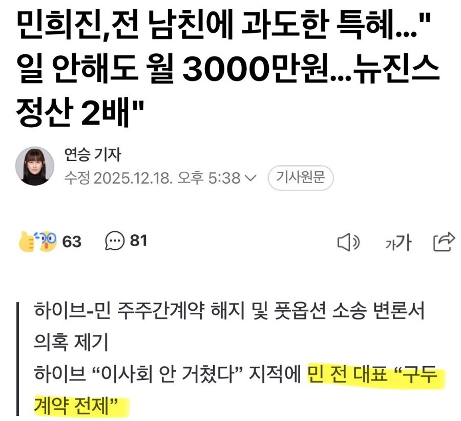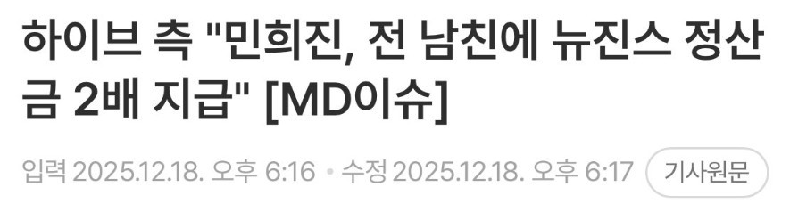 민희진, 전 남친에 뉴진스 정산금 2배 지급