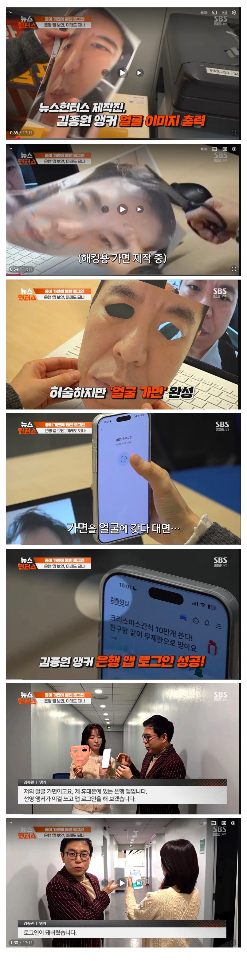 앵커 얼굴 프린트해서 은행앱 로그인 해보기