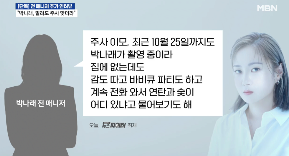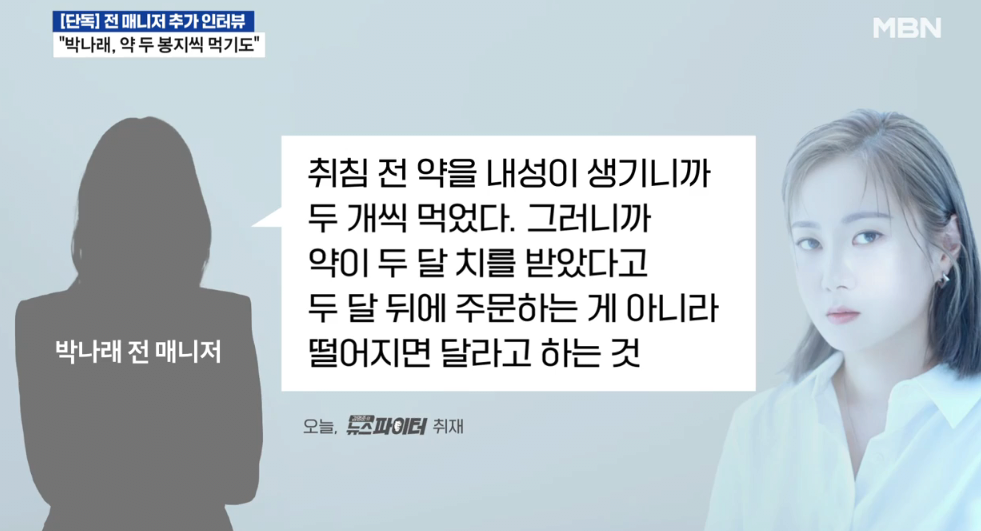 박나래 전 매니저 "박나래가 약 먹은거 맞다"