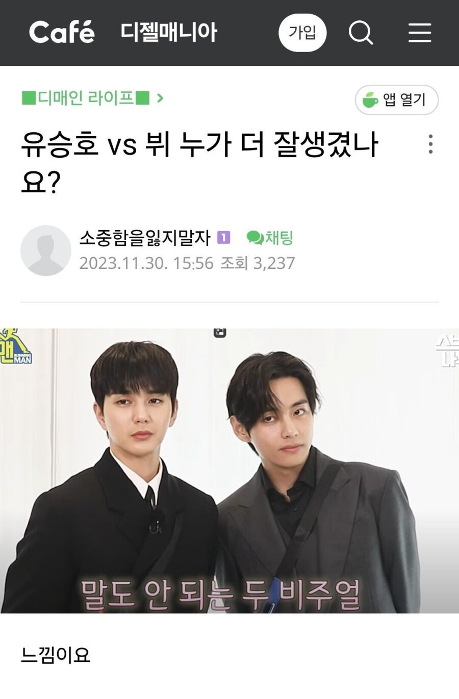 누가 더 잘생겼나요? 디매에선 한 쪽으로 몰표나옴