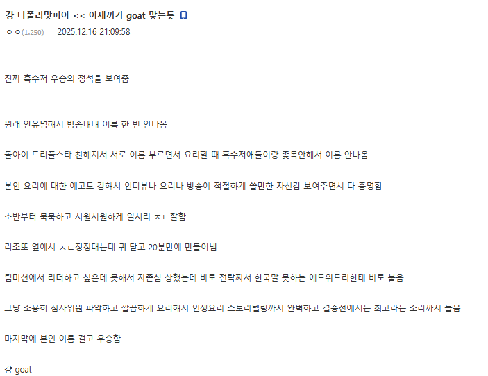 흑백요리사2 갤러리에 올라온 디씨 만담 모음집