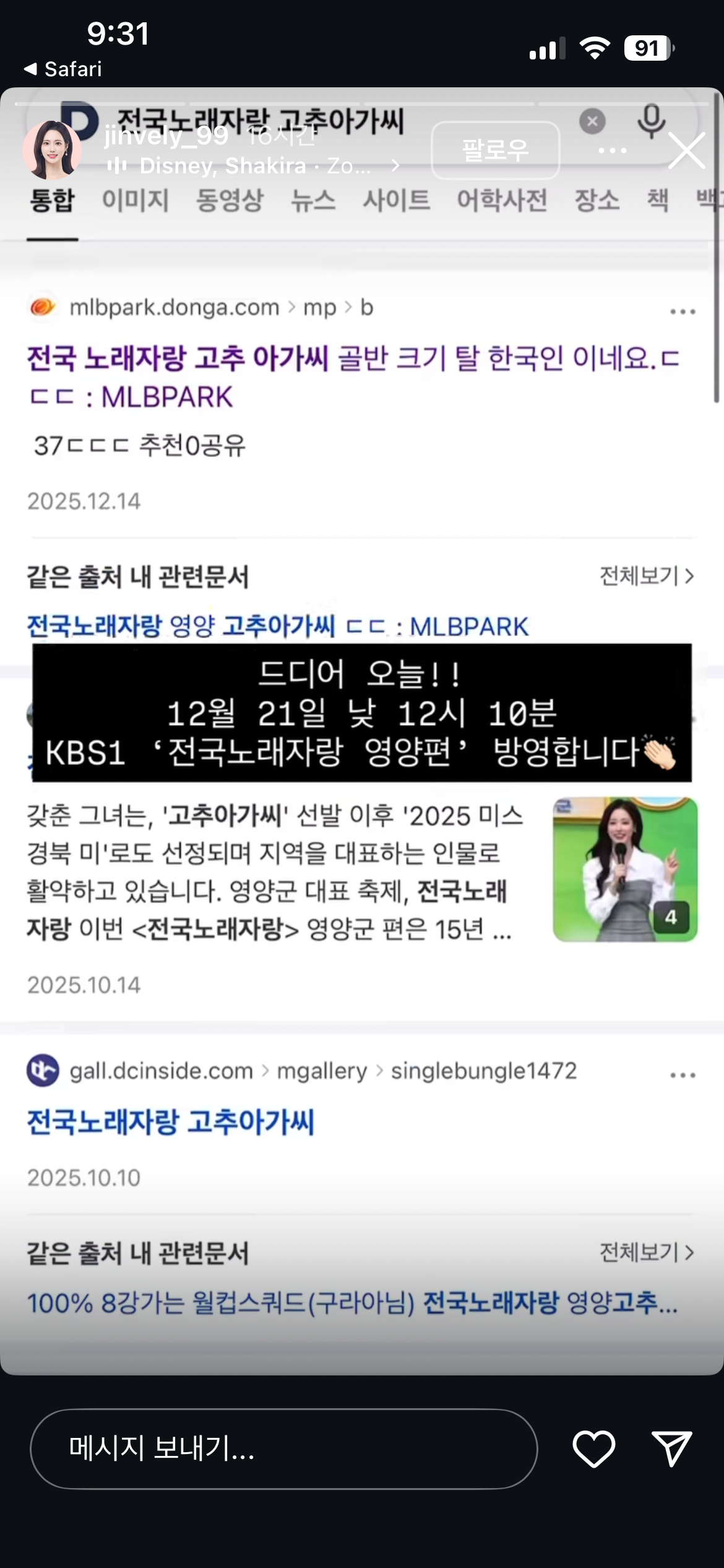 전국노래자랑 영양 고추아가씨 스토리 근황