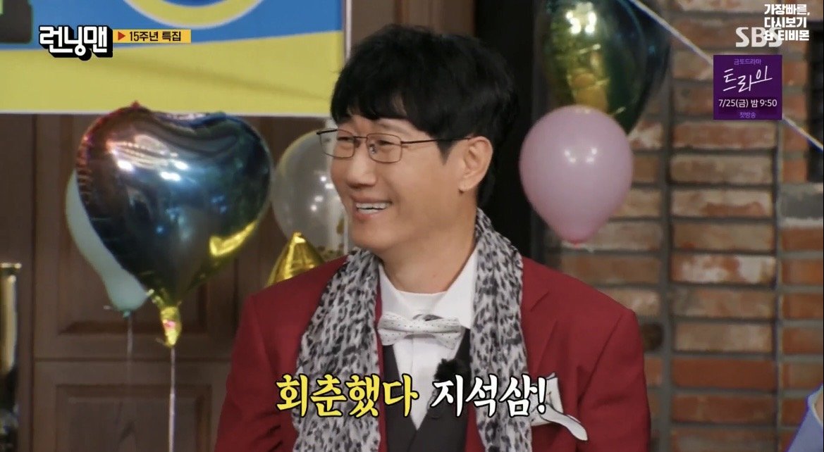 지석진이 런닝맨 시작했을 때 나이가 45세였고 내년이면 16년 지난 61세