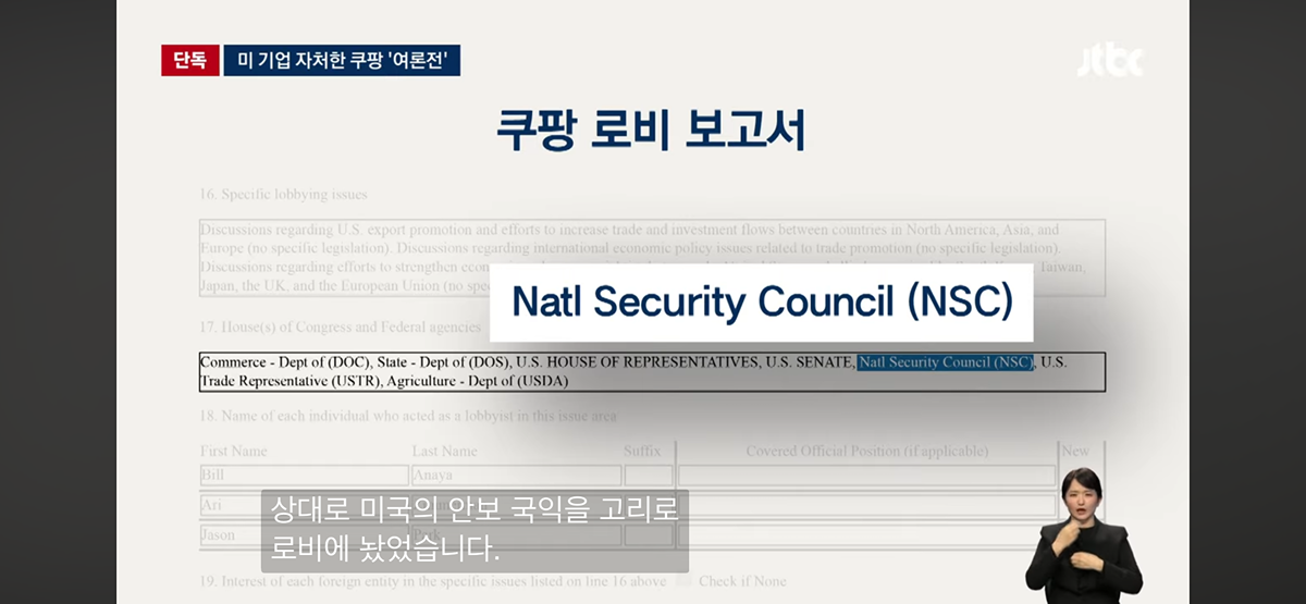 쿠팡은 그 직후인 3분기부터 백악관 NSC와 의회 등을 상대로 '미국의 안보·국익'을 고리로 로비에 나섰습니다.