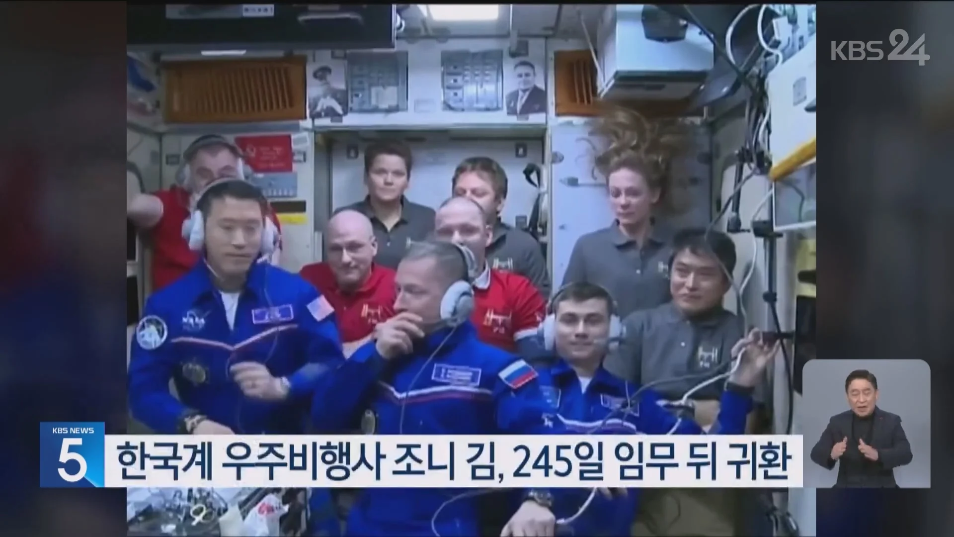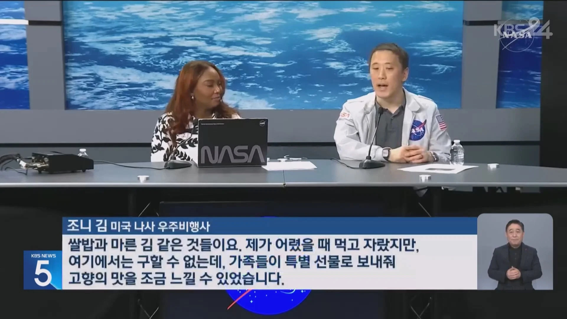 지구로 귀환한 한국계 미국인.."김치, 김 그리웠다"