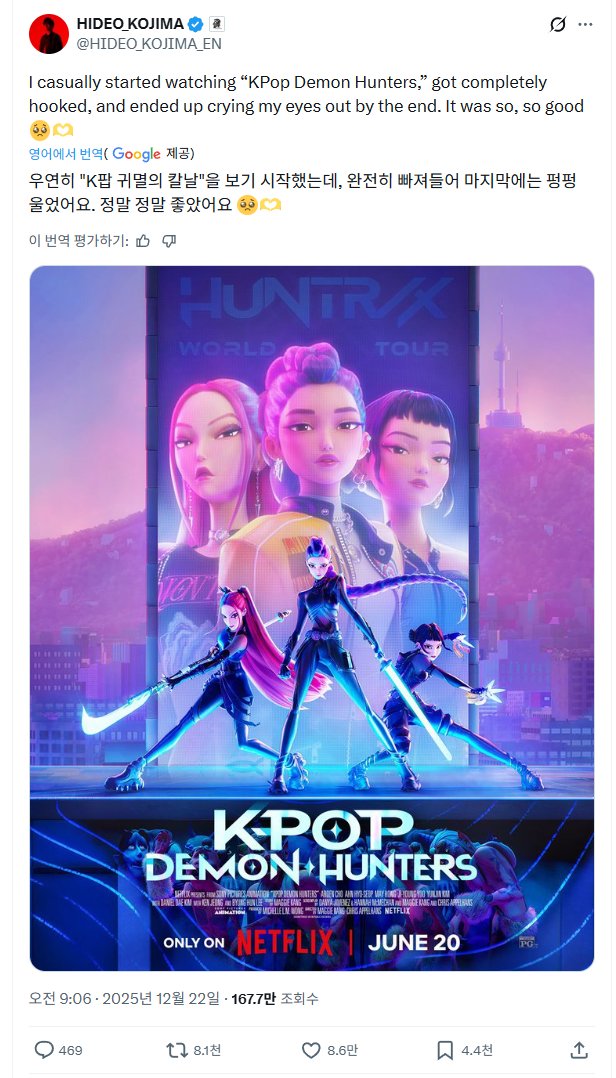 구글에서 "데몬헌터스"가 "귀멸의 칼날"로 번역되는군요