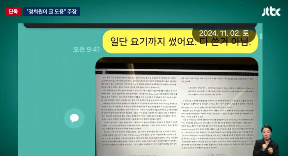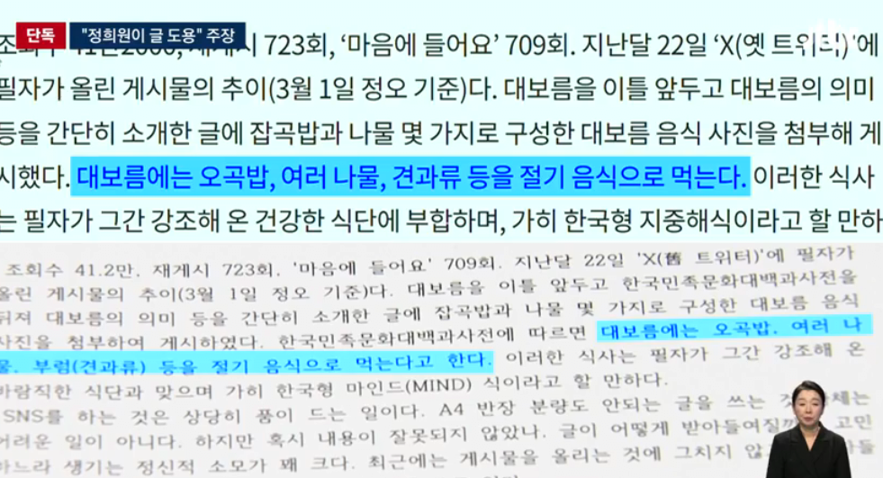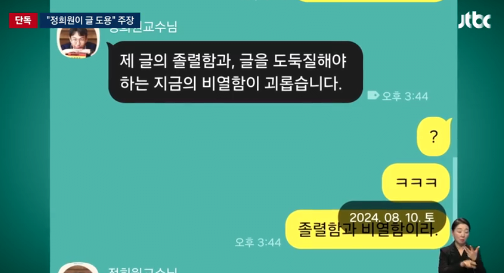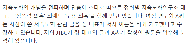 "정희원이 내 글 도용" 검증…첫 문장부터 일치