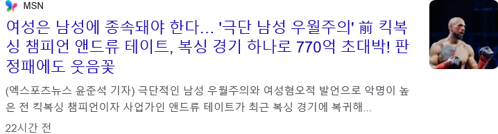 공교롭게도 바로 다음날 알파메일의 우상 앤드류 테이트도