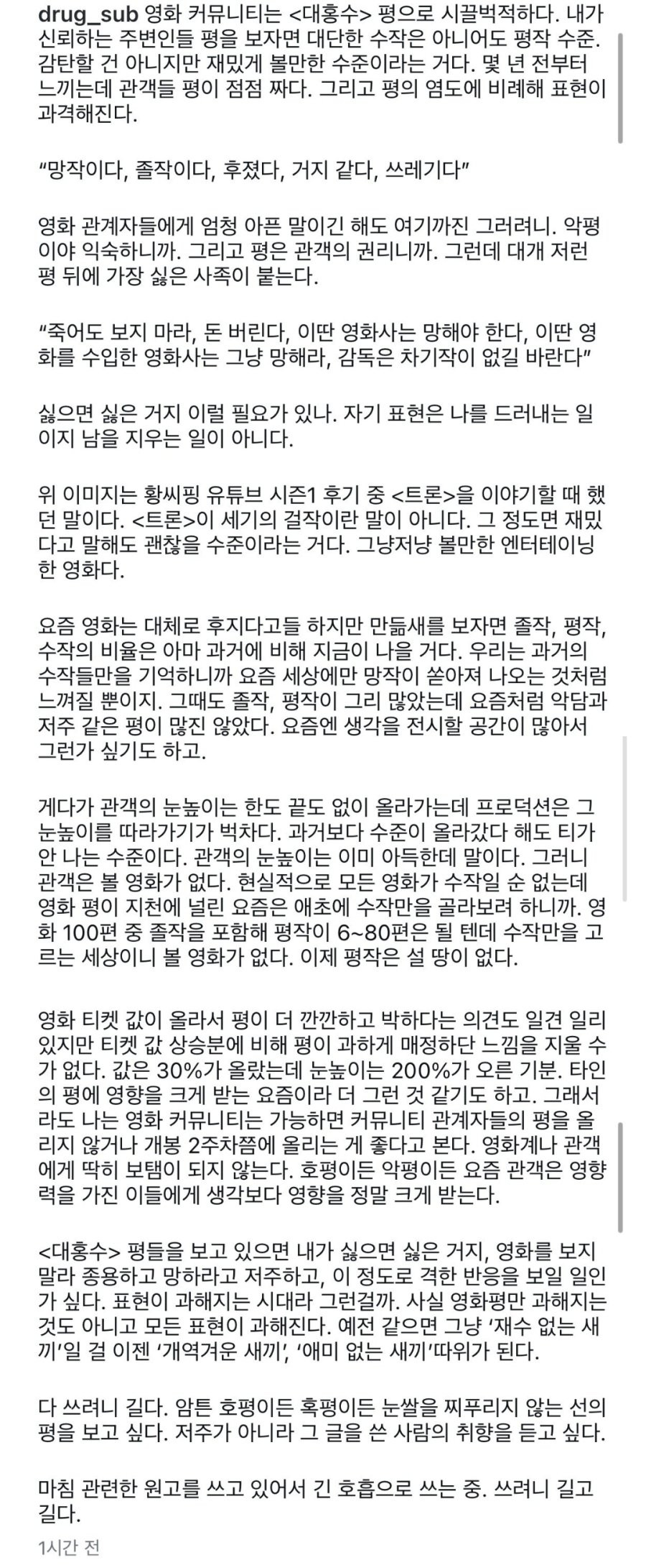 황석희 번역가의 영화 "대홍수" 관련 일침글