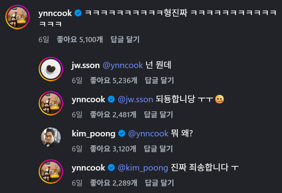 윤남노 : ㅋㅋㅋㅋㅋ 형 진짜 ㅋㅋㅋㅋ