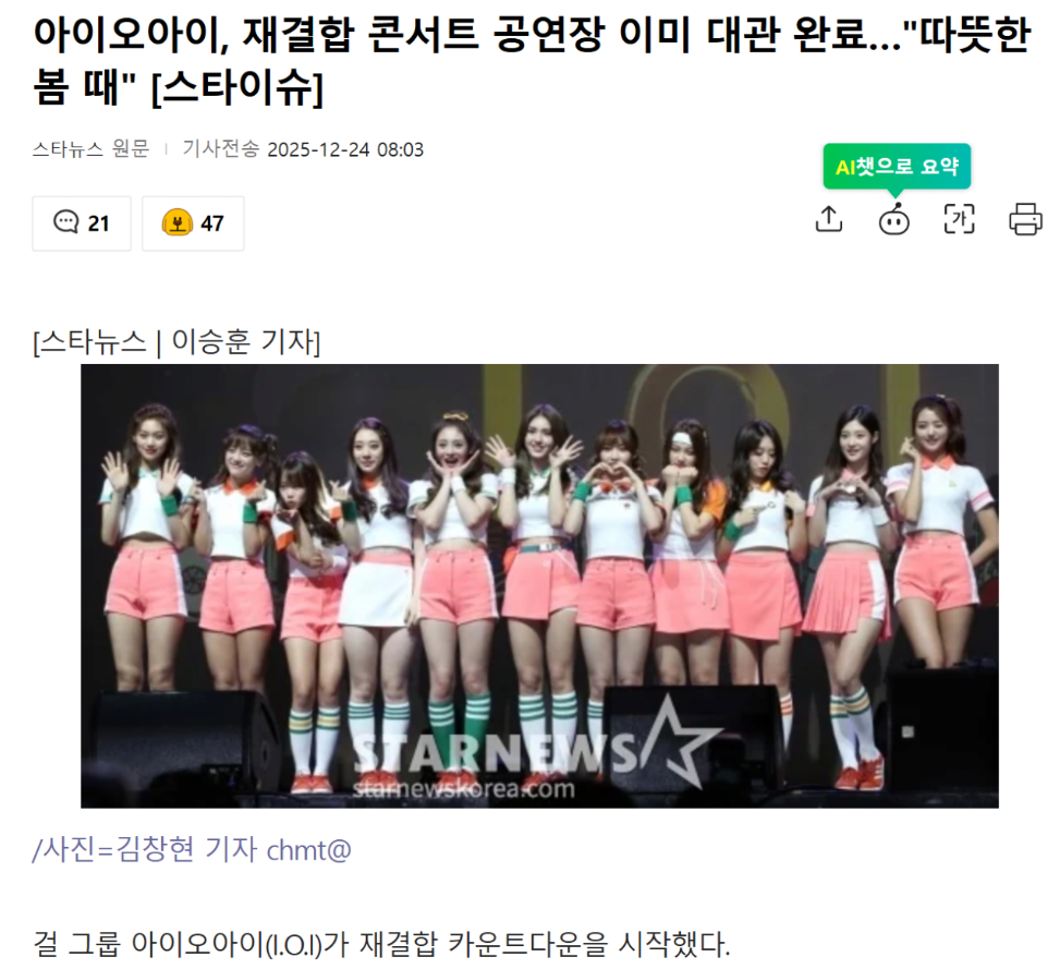 아이오아이, 재결합 콘서트 공연장 이미 대관 완료
