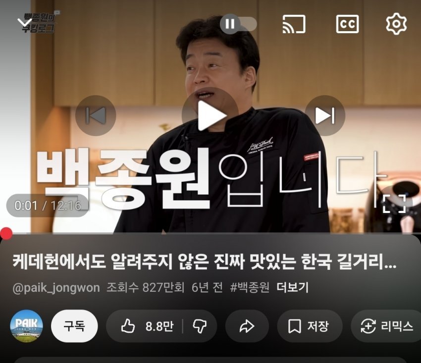 백종원 채널 개선 근황