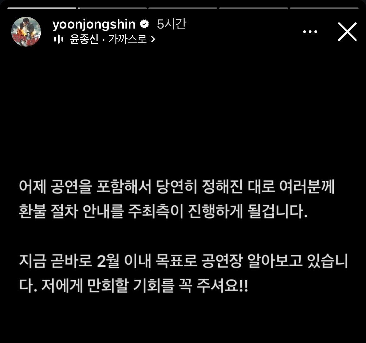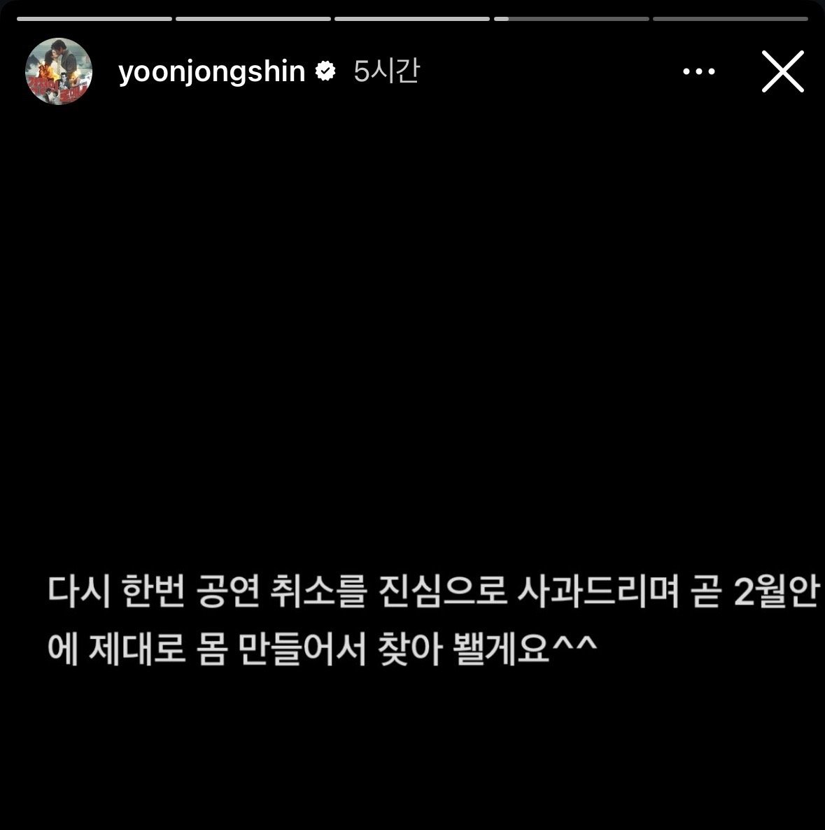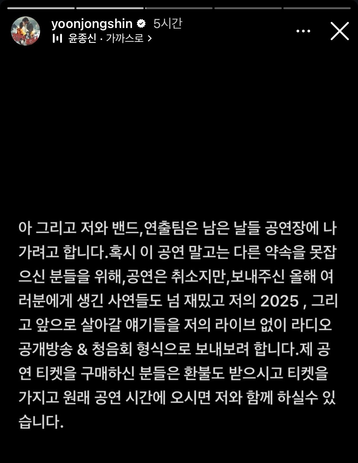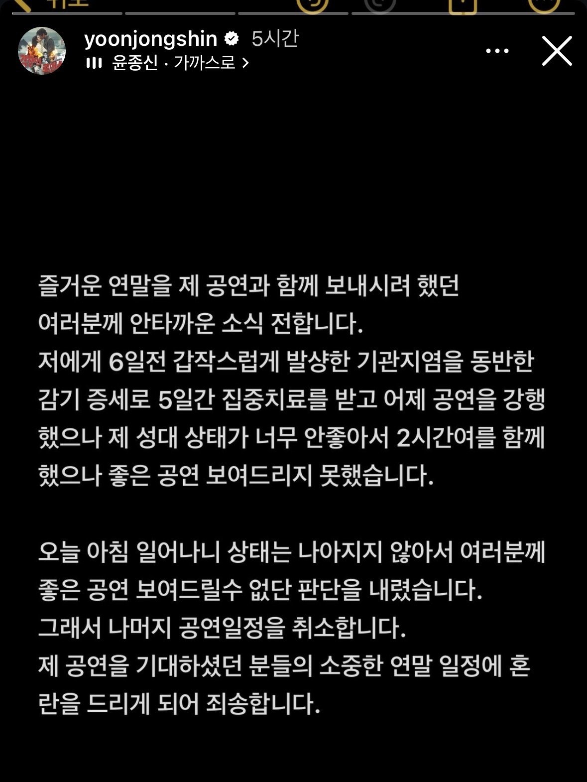 건강 문제로 갑작스레 공연 취소 공지한 윤종신