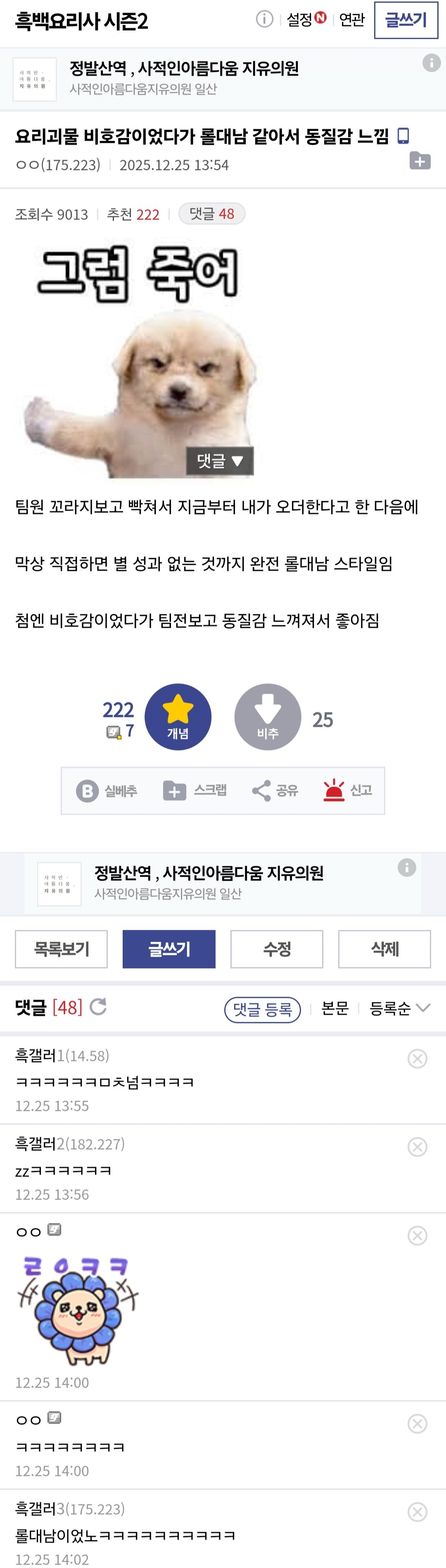 흑백2 요리괴물 비호감이었다가 롤대남같아서 동질감 느낌