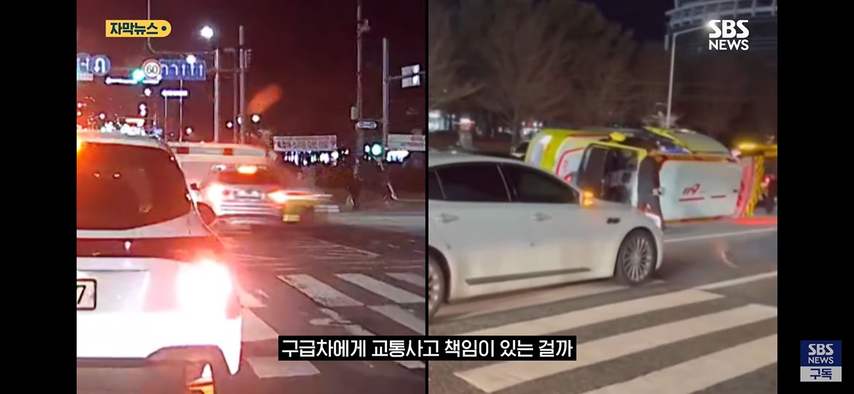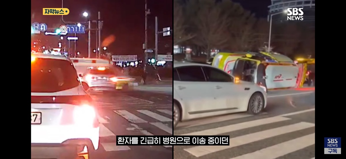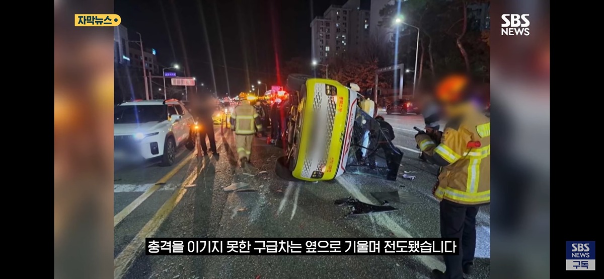 "병원까지 단 10분인데"...승용차와 "쾅" 뒤집힌 구급차