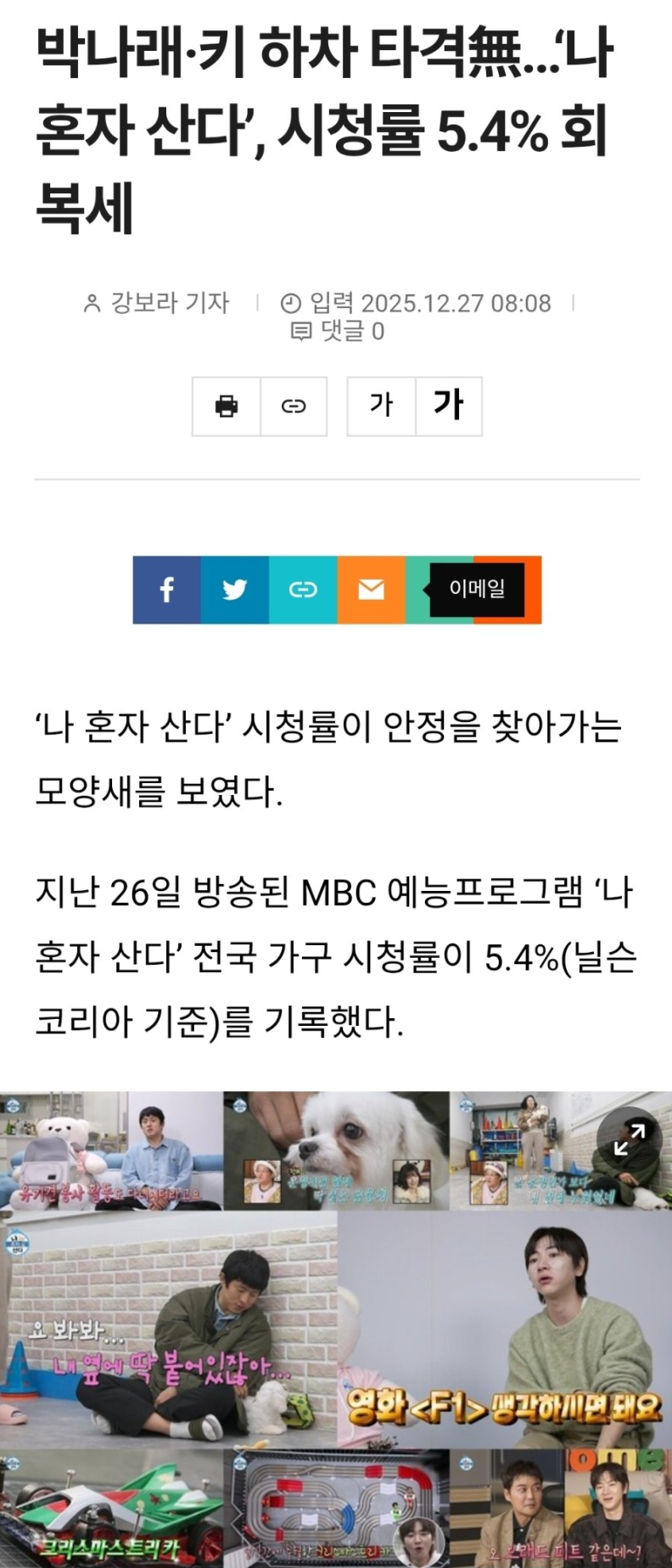 박나래, 키 하차한 나혼자산다 시청률 근황