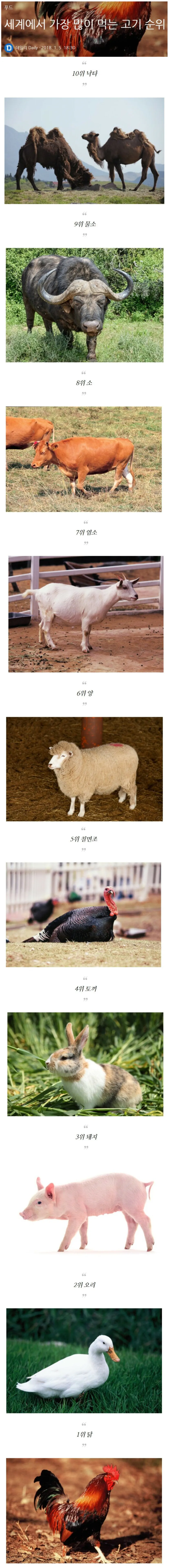 (마리수 기준인거고, 무게로 순위 메기면 닭-돼지-양-소 순서가 된다고 함)