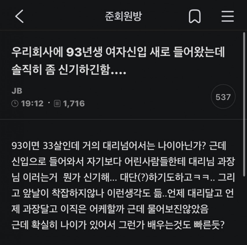 중소 다니는데 33살 여자가 신입으로 옴;