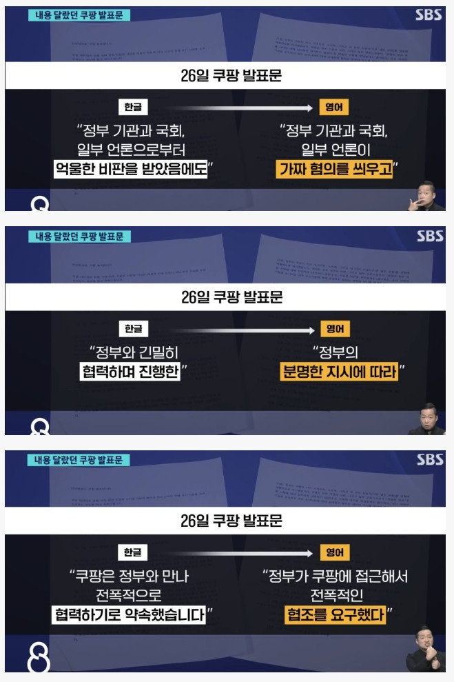 쿠팡 " 정부가 가짜 혐의 씌우고 있다"
