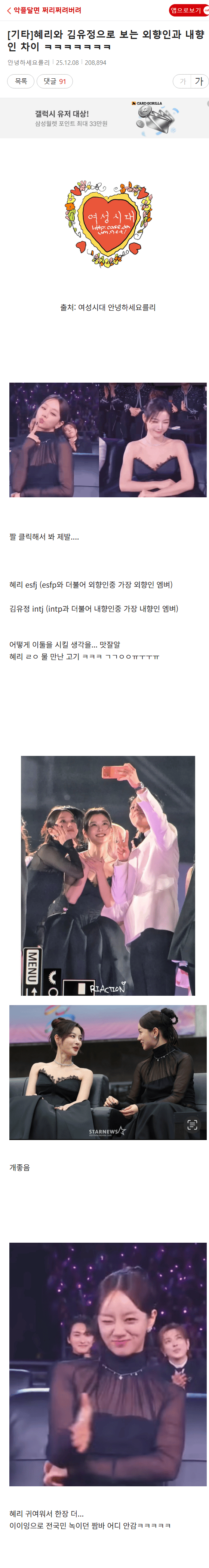 혜리와 김유정으로 보는 외향인과 내향인 차이