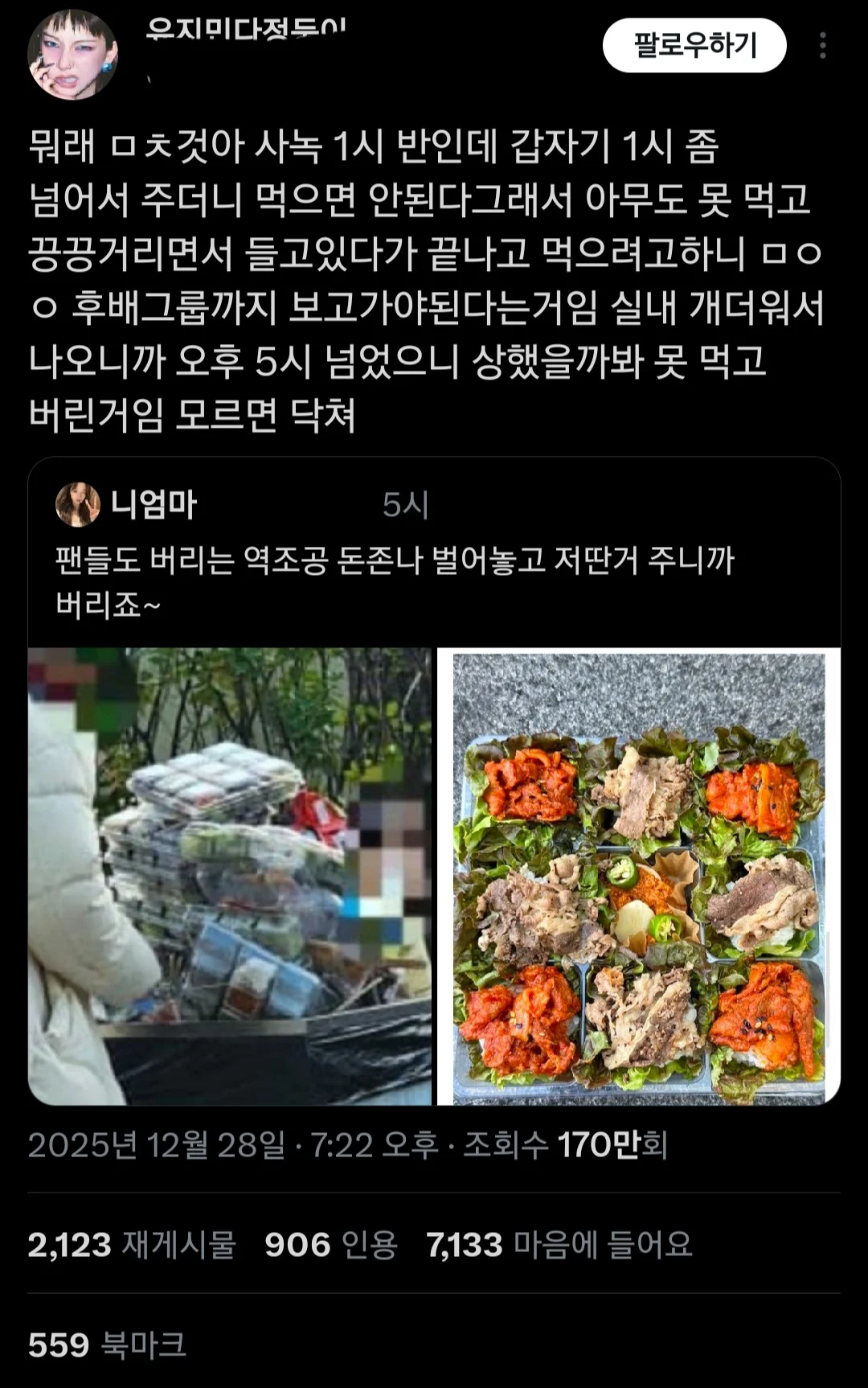 에스파 역조공 기싸움 근황 댓글 0 조회 580 2025-12-29 11:34 돌잔치앤가반나 Lv.11 게시글 보기 총 게시글: 1,291개 총 댓글: 0개 팬들도 일부러 기싸움하고 버린게 아니고 일정꼬여서 걍 못먹고 버린듯 ㅋㅋㅋㅋ 돌잔치앤가반나님의 다른 글 25.12.29 어벤져스 둠스데이 캐스팅명단 떴다 25.12.29 폼 다시 돌아왔다는 레드벨벳 조이 ㄷㄷ 25.12.29 하이브, 뉴진스 "다니엘"만 내쫓는다 25.12.29 에스파 역조공 기싸움 근황