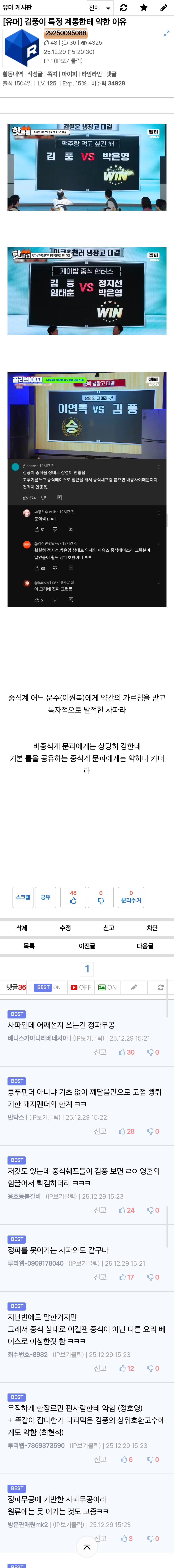 김풍이 특정 계통한테 약한 이유