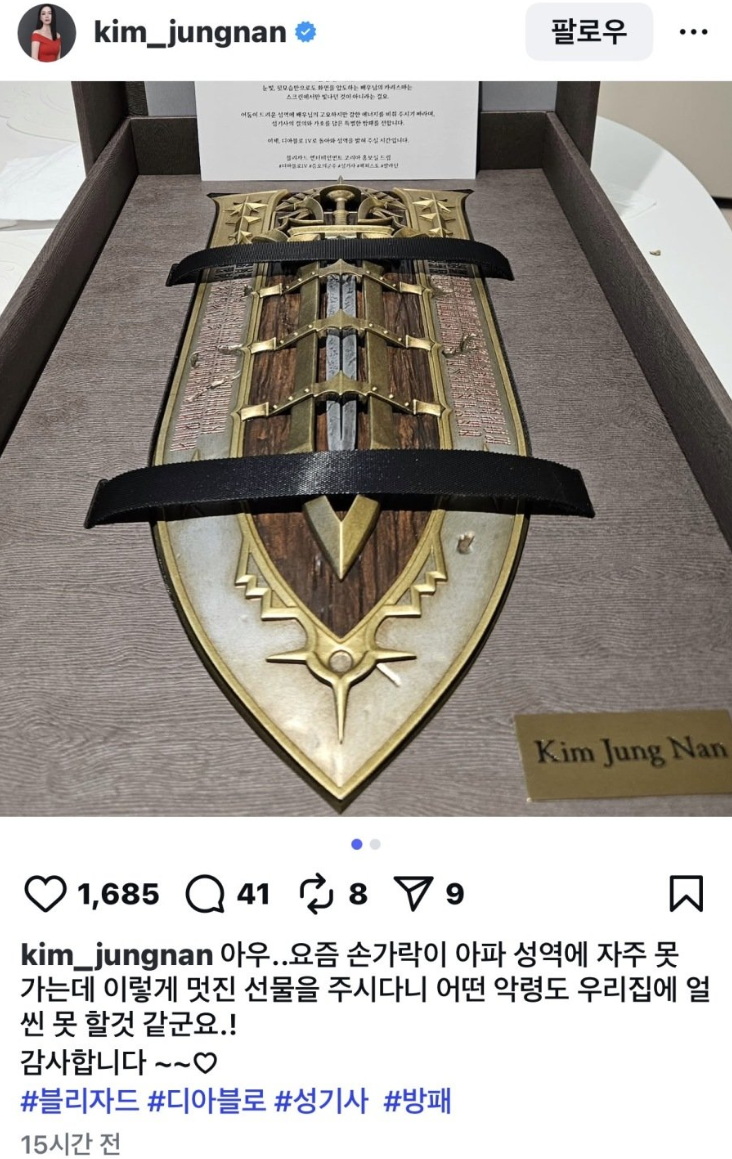 배우 김정난이 블리자드에서 받은 방패