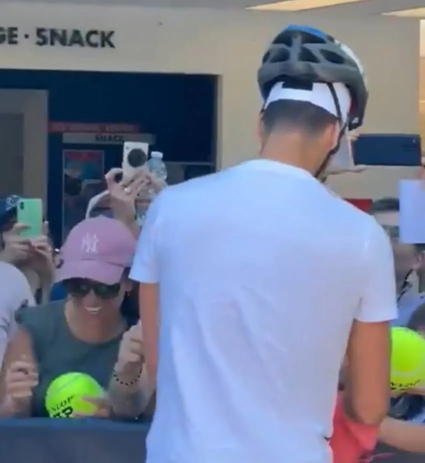 조코비치가 팬들한테 싸인해주는 도중 무거운 금속성 물체가 머리위로 떨어짐