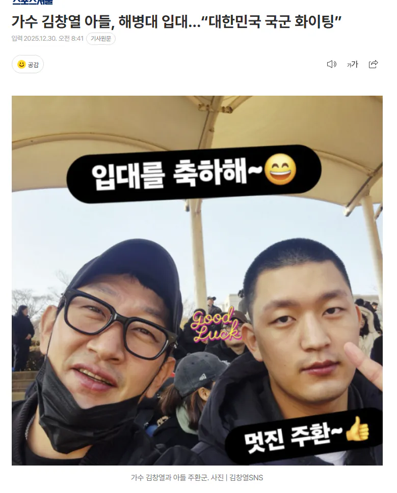 가수 김창열 아들, 해병대 입대…“대한민국 국군 화이팅”
