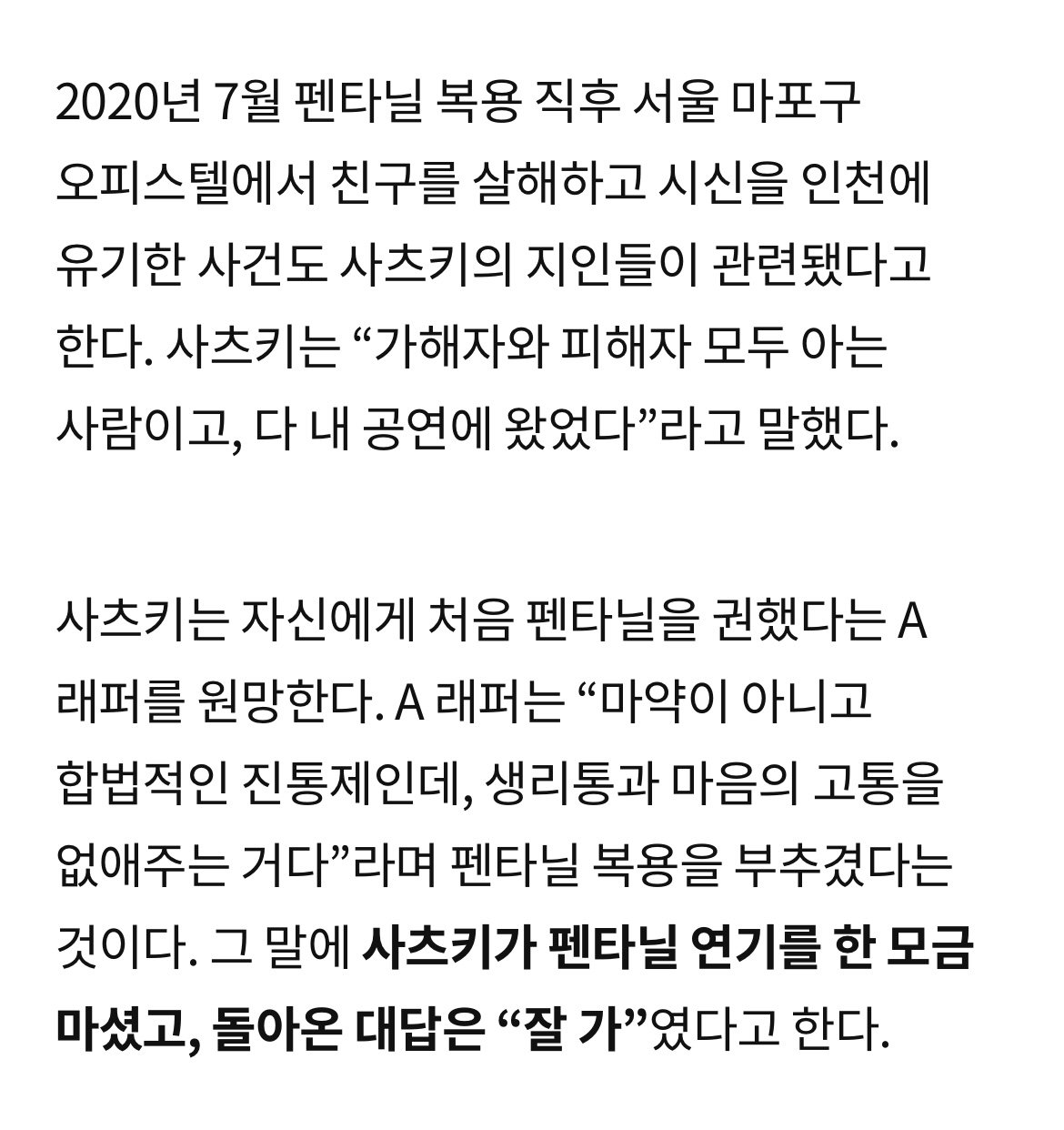 래퍼 사츠키가 펜타닐을 시작하게된 계기 ㄷㄷ