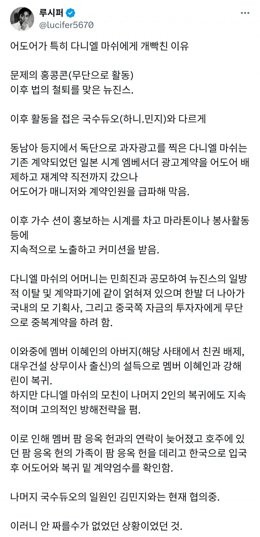 뉴진스는 다니엘 엄마가 진짜 위험인물이였네요