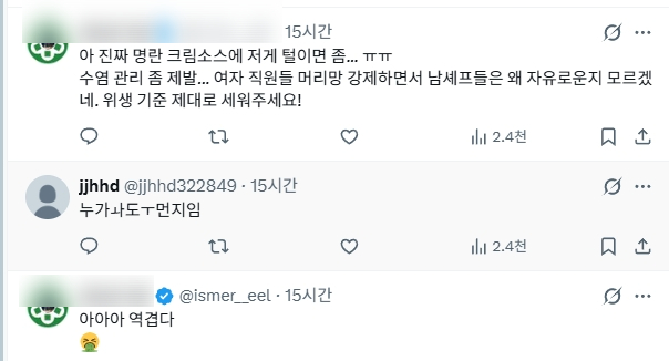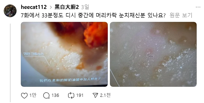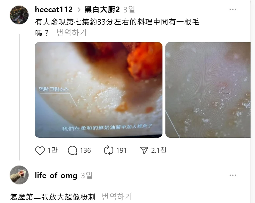흑백요리사2에 머리카락 들어 있다며 우기는 중궈들이랑 우연히도 비슷한 시기에 글이 올라옴