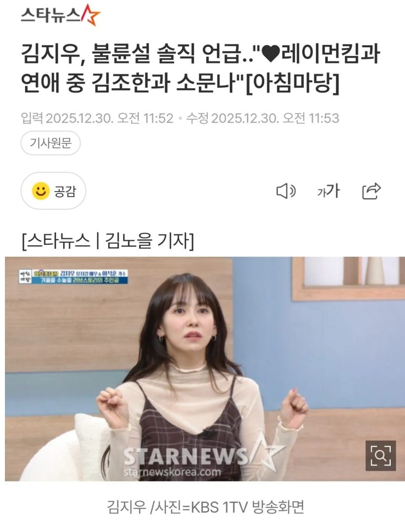 배우 김지우, 불륜설 솔직 언급 댓글 0 조회 502 2025-12-30 22:13 갓파 Lv.10 게시글 보기 총 게시글: 1,297개 총 댓글: 0개 https://m.entertain.naver.com/home/article/108/0003395764 둘중에 한분은 수염 밀어야할듯ㅋㅋㅋㅋㅋ 갓파님의 다른 글 25.12.30 살 많이빠진 강미나 다른 사진들 25.12.30 흑백2 임짱이 ㅈㄴ 빠를수 있는 이유 25.12.30 일본 성우들 AI 소송 근황 25.12.30 뉴진스갤에서 민희진 볼드모트행