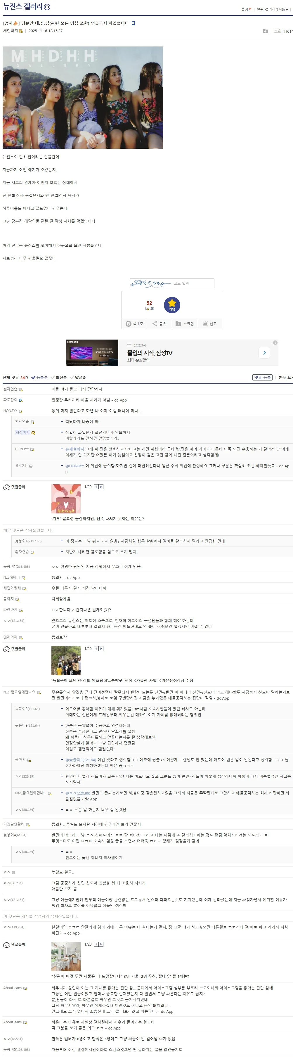 민희진때문에 뉴진스갤도 지금 서로 다투는중