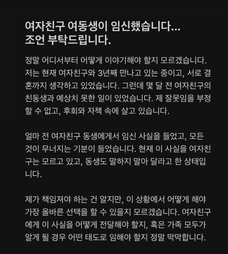 여자친구 여동생을 임신시켰다는 남자