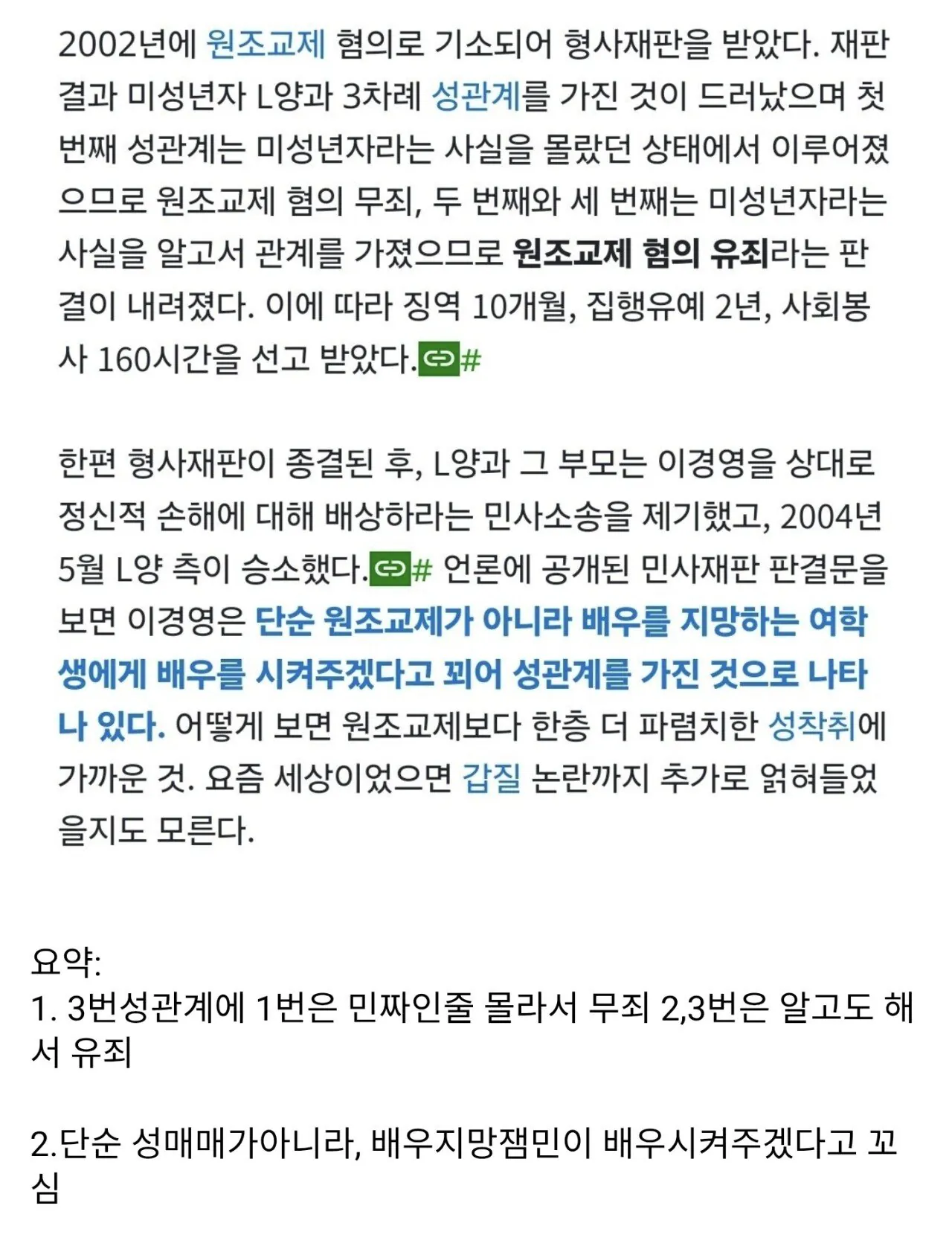 맨날 올라오는 이경영 미성년자 성매매 사건 팩트